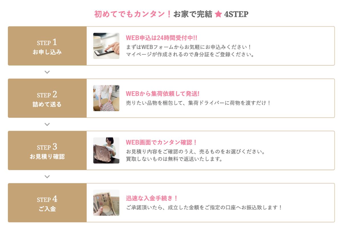 クローゼット整理や引っ越しなどで多くのブランドアイテムを一度に売却したい場合にも対応しています。
